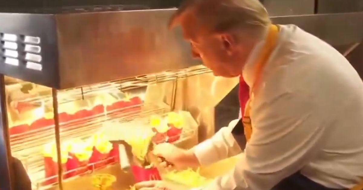 Trump se puso un delantal de McDonald´s y comenzó a trabajar con los empleados del local ubicado Filadelfia, ciudad del estado de Pensilvania.