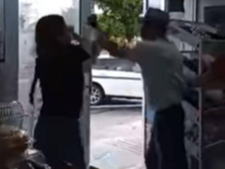 El hombre, molesto, lanzó el producto detrás del mostrador la insulta y abre la puerta, no sin antes lanzarle un manotazo.