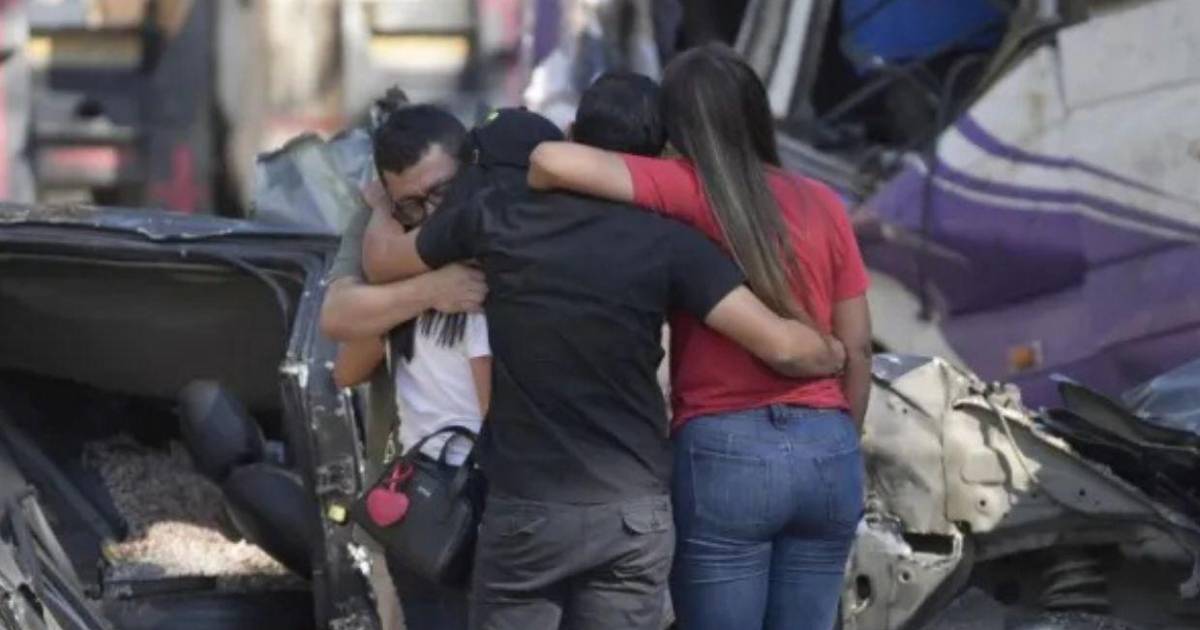 Aunque los últimos cuerpos fueron recogidos durante la madrugada, en el lugar quedan rastros de sangre y pertenencias dispersas entre la tierra removida y los restos acumulados a los lados de la carretera, hasta donde han llegado familiares que, como el grupo que se abraza frente a uno de los vehículos destruidos, buscan algún objeto que les permita reconocer a los suyos.