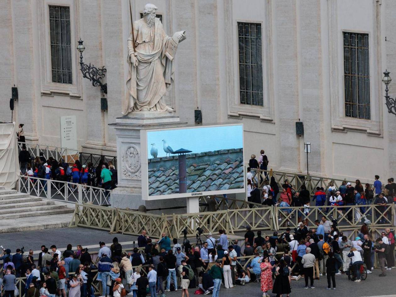Además de los fieles, las televisiones de todo el mundo apuntan al tejado de la Sixtina para captar en primer plano la chimenea, en la que, como el miércoles, volvieron a posarse dos gaviotas que parecen hacer guardia a la espera del humo.