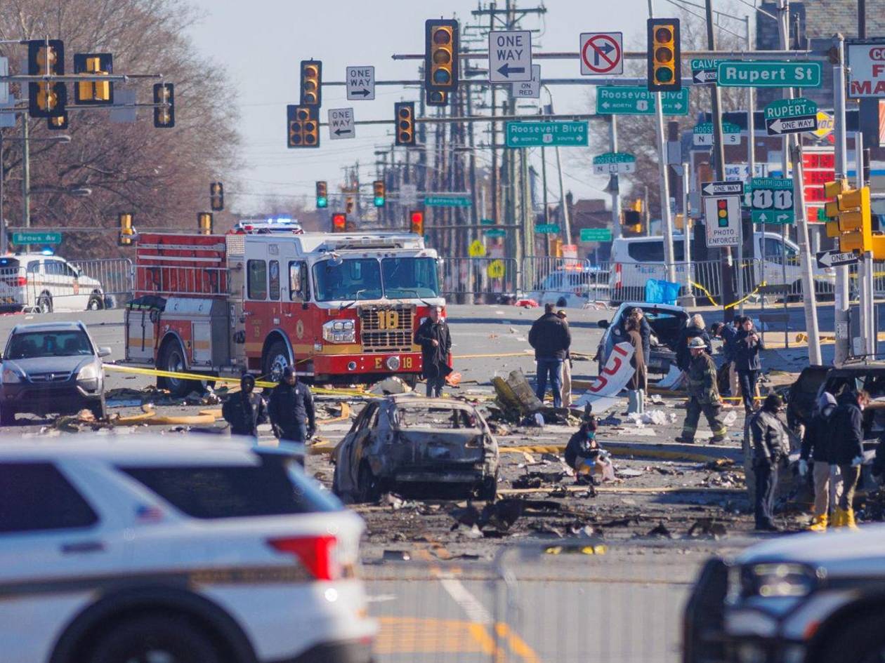Este sábado se confirmó el fallecimiento de una séptima víctima que estaba en tierra. Aquí las imágenes que dejó el fatal accidente aéreo en Filadelfia