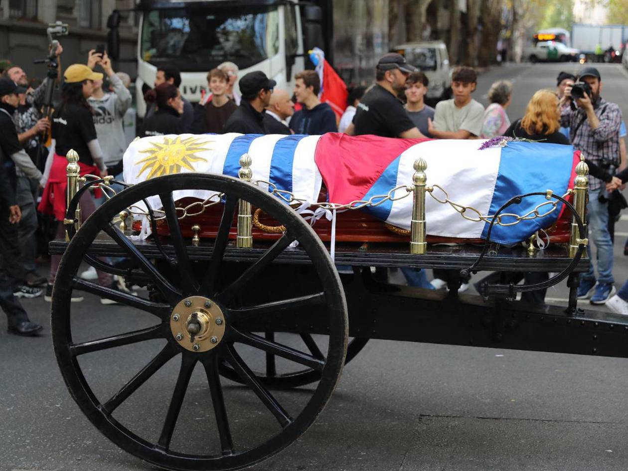 El cortejo fúnebre de Mujica partió desde el Palacio Estevez de Montevideo, donde el actual mandatario, Yamandú Orsi, colocó el pabellón patrio sobre el féretro.