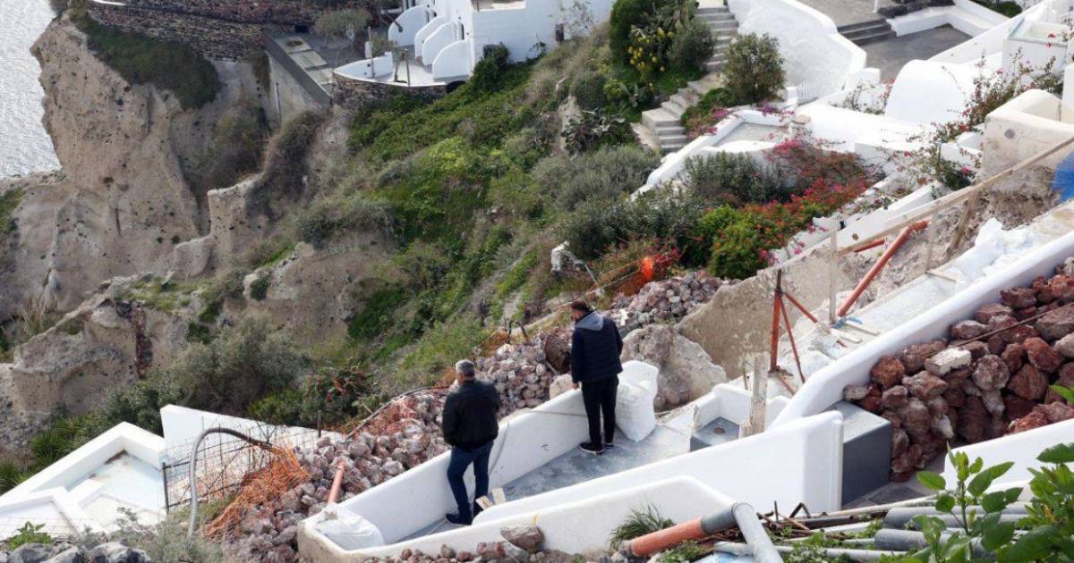 En su capital, Fira, y el pueblo turístico de Oia reina un silencio inédito y ya apenas nadie pasea por sus pintorescas callejuelas, muchas de las cuales han sido cerradas al paso con cintas de seguridad debido al riesgo de derrumbes de edificios.