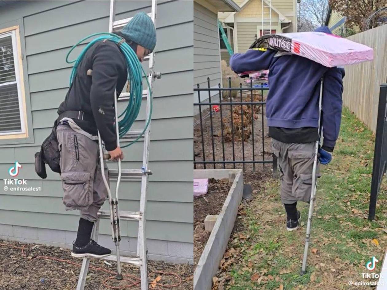 No es un secreto que los trabajos en Estados Unidos demandan mucha fuerza y sacrificio. Rosales trabaja reparando techos y, sin su pierna, ha adquirido muchas destrezas que le han permitido lograrlo.