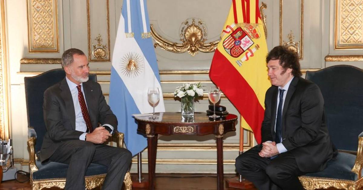 El ultraderechista recibió al rey en el Palacio San Martín, sede protocolar de la cancillería argentina. La Casa Real española publicó fotos del encuentro sin precisar detalles de la agenda.