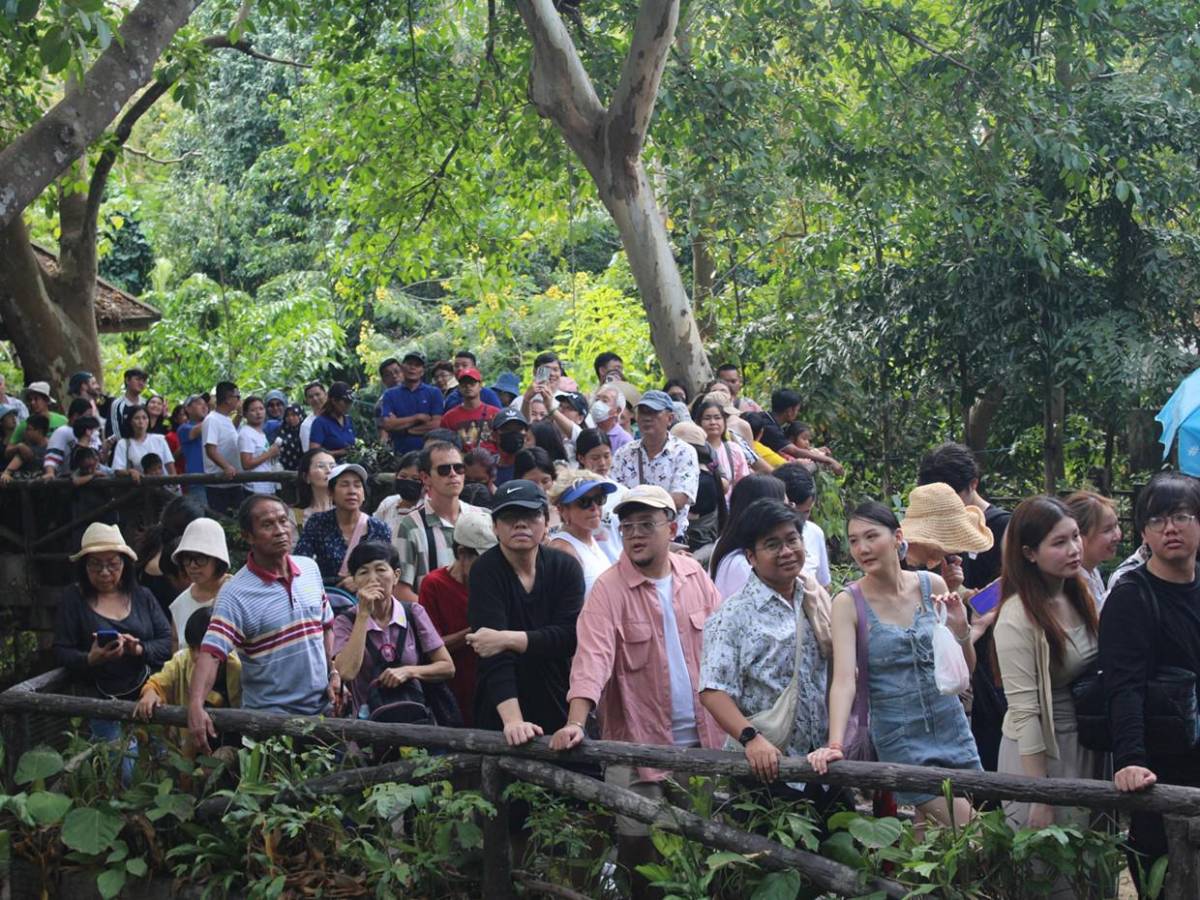 Visitantes de todo el mundo, desde Singapur hasta los Estados Unidos, hacen largas filas para ver a Moo Deng junto a su madre.