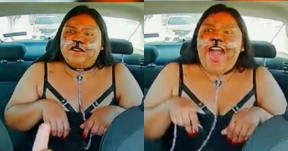 En el video se observa que la mujer sube al carro actuando como un perro, con el rostro maquillado y haciendo gestos inusuales.
