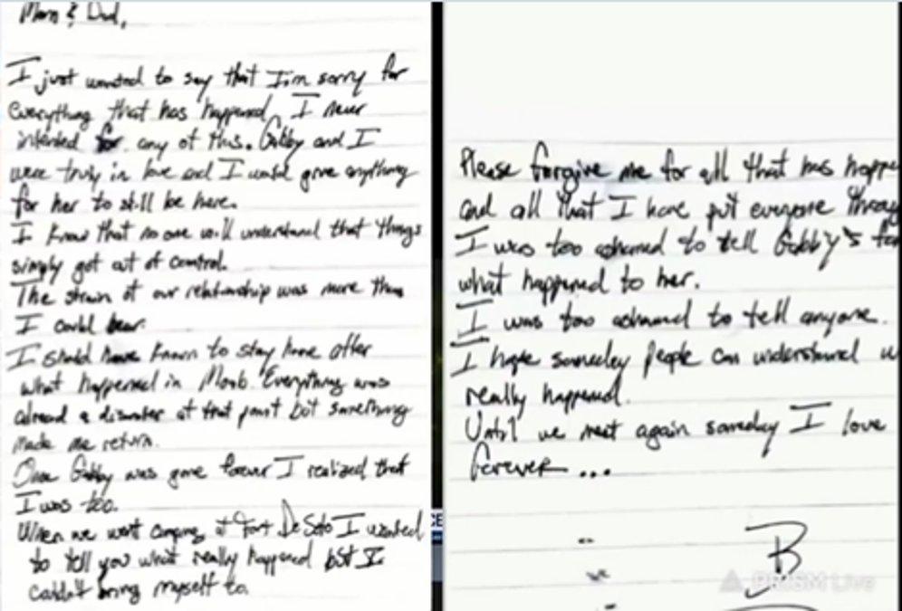Tras encontrar un supuesto escrito del prometido de Gabby Petito, Brian Laundrie, este caso vuelve a tomar vigencia, porque se desvela la intención del porqué asesinó a su pareja durante el viaje y posteriormente él se suicidó. Aquí te contamos lo que dice el manuscrito.