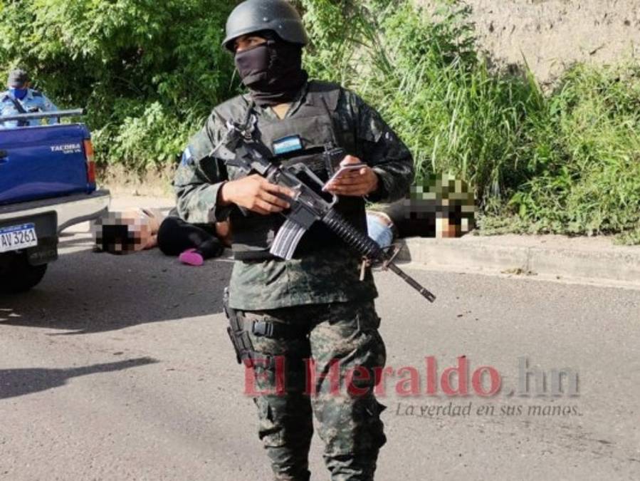 Una dolorosa escena fue captada en pleno día en el anillo periférico de la capital, muy cerca de la Fuerza Aérea Hondureña. Una pareja fue acribillada y sus familiares, devastados y sumidos en dolor, llegaron al sector para reconocer sus cuerpos. Fotos: Aníbal Vásquez/EL HERALDO 16/09/2020 - 00:001 / 17 -
