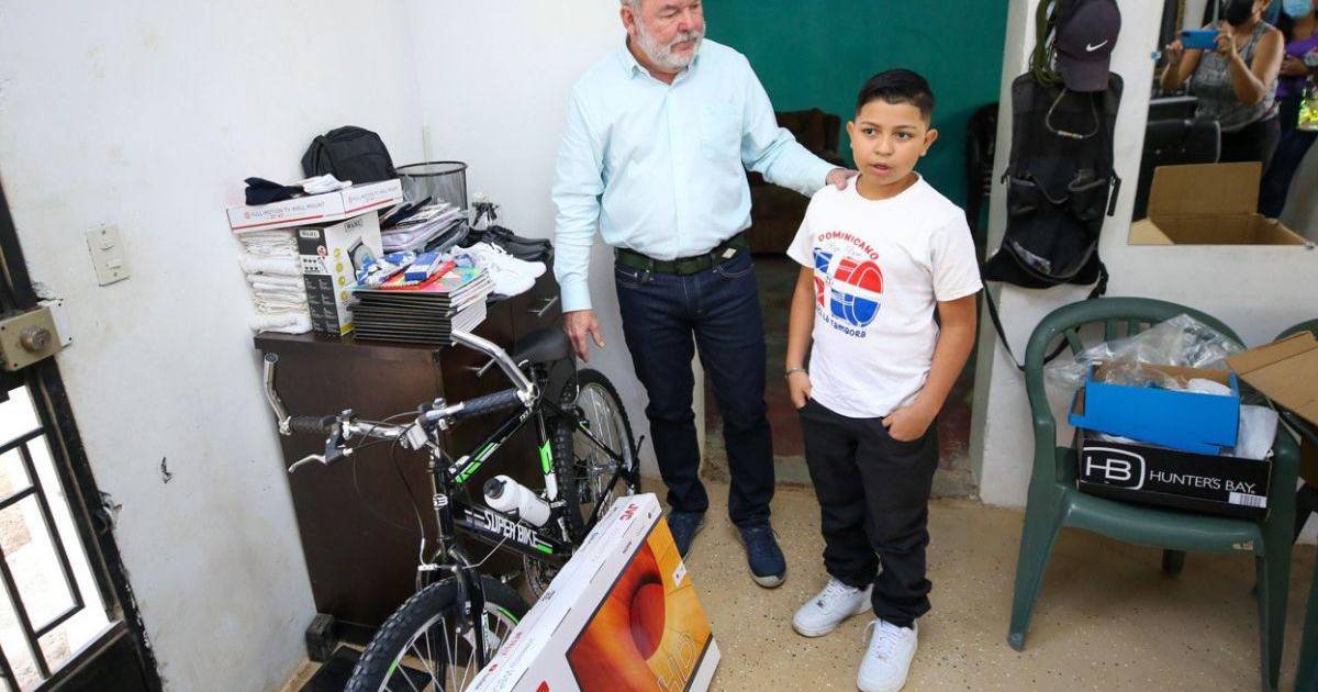 Útiles escolares, uniforme, calzado, un televisor, una bicicleta, una máquina de cortar cabello y otros implementos para su barbería recibió el joven emprendedor, quien dijo sentirse muy emocionado de conocer a Contreras y recibir la ayuda.
