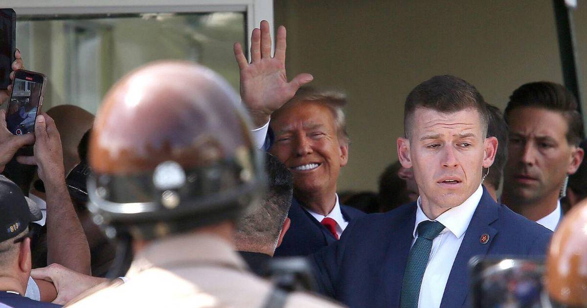El expresidente Donald Trump, favorito para ser el candidato republicano a la Casa Blanca en 2024, se declaró no culpable este martes al comparecer ante un tribunal federal de Miami. A su salida se le vio sonriente y saludó a algunos de sus seguidores. Aquí las imágenes.