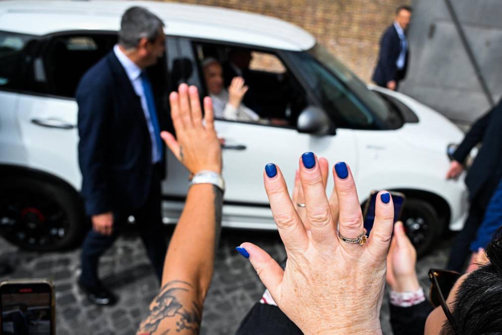 Sonriente y saludando a todos salió el papa Francisco del hospital