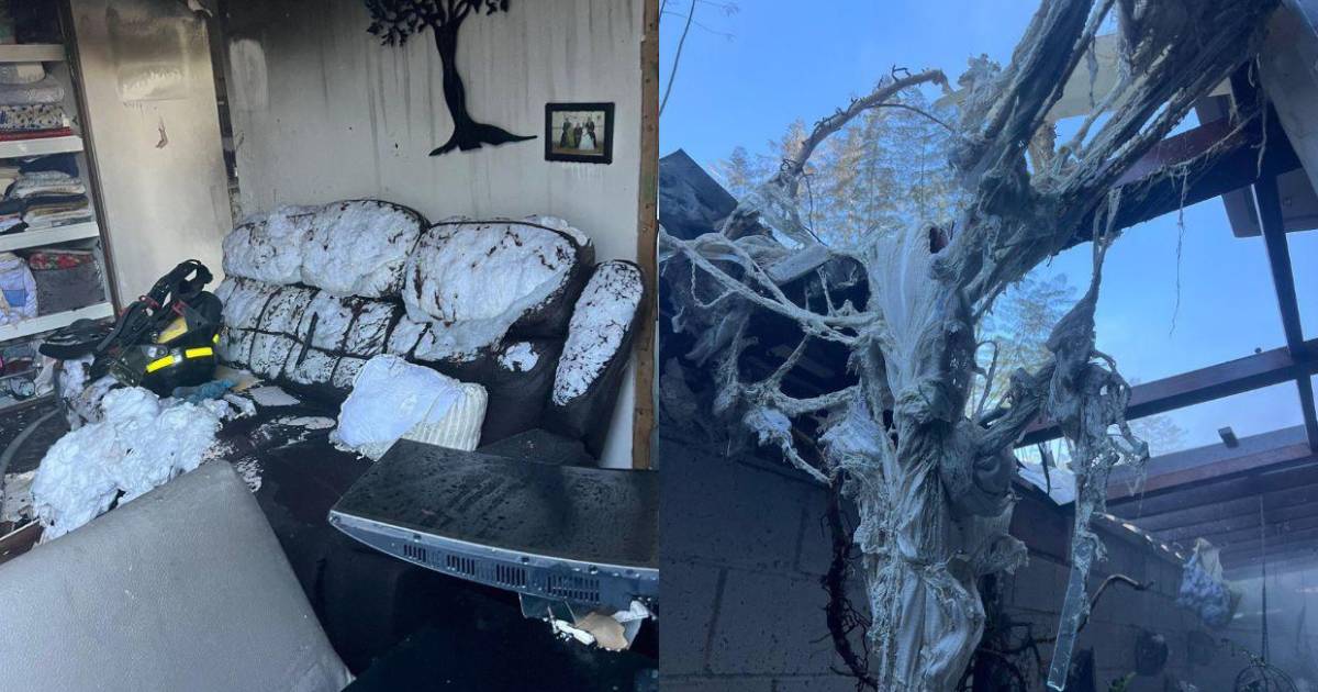 En las fotografías se observa cómo el fuego consumió gran parte del mobiliario y dejó ennegrecidas las paredes y el techo.