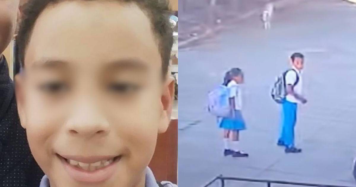 Las imágenes muestran al menor, de 10 años de edad, saliendo de su vivienda junto a otra niña, ambos con uniforme y mochilas.