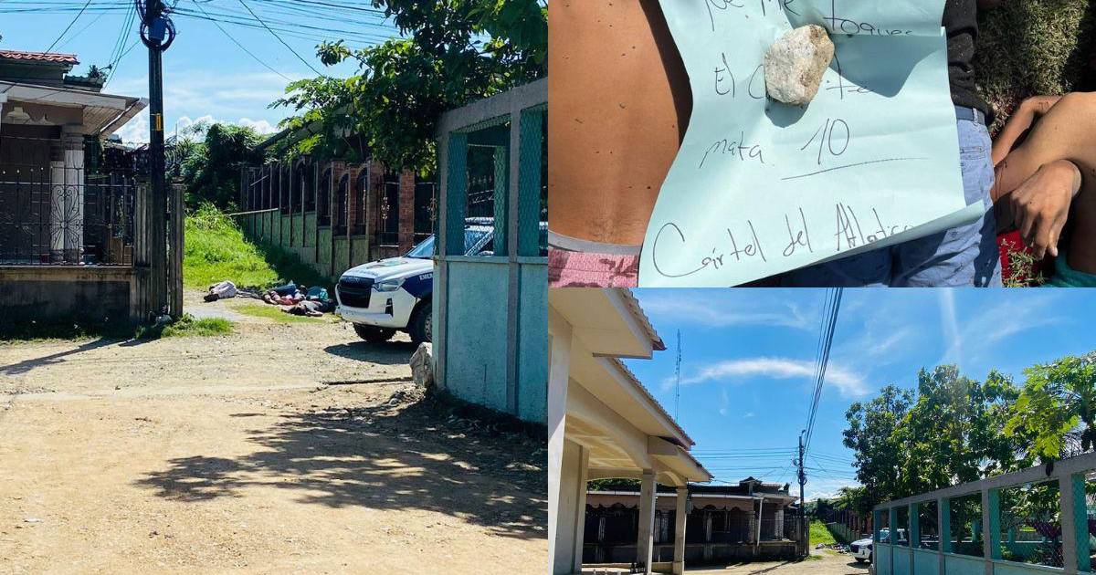 ”Por cada uno que me toques, el cartel te mata 10. Cartel del Atlántico”, ese fue el mensaje que dejaron sobre las cinco personas que fueron acribilladas a disparos en una nueva masacre que se registró en Baracoa, Cortés.