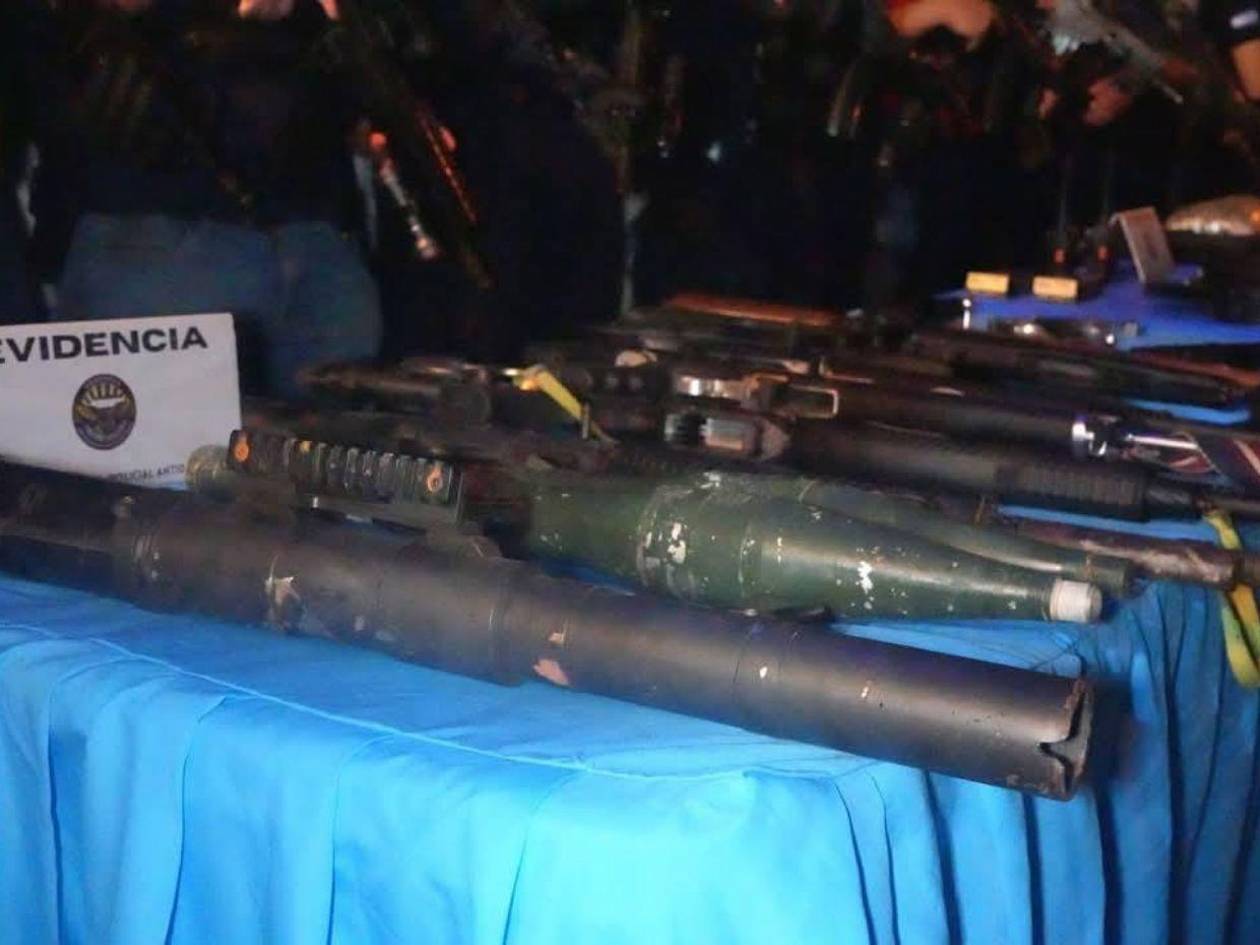 A los detenidos se les decomisó un lanzagranadas con dos ojivas de lanzamiento antitanque, tres armas de fuego tipo escopeta, tres fusiles, tres pistolas de diferentes calibres