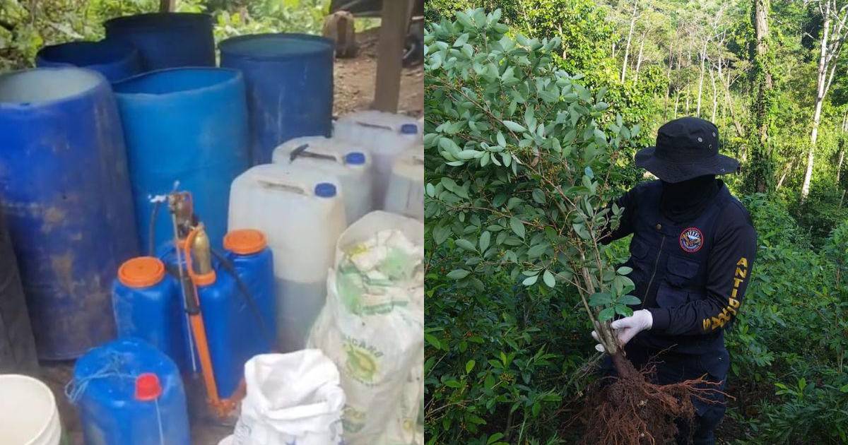 Agentes antidrogas aseguraron esta mañana una extensa plantación de hojas de coca y un narcolaboratorio en el municipio de Iriona, Colón, en una operación.