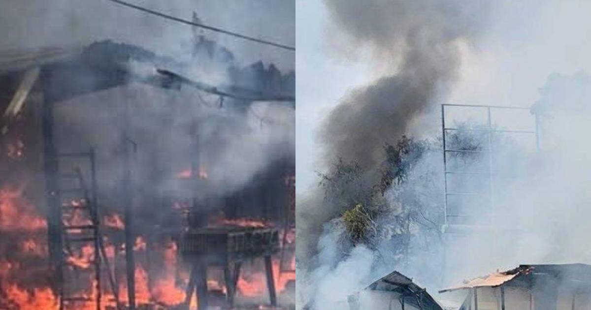 En imágenes y videos compartidas por los mismos vecinos de la comunidad se muestran los locales en llamas desde los distintos puntos grabados.