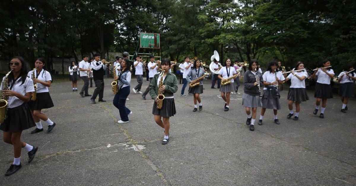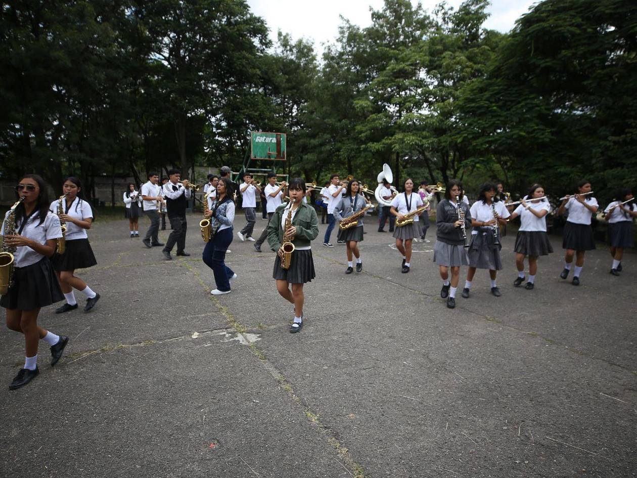 Con 35 integrantes y un repertorio variado, la banda marcial del Instituto Central Vicente Cáceres ha entrenado durante casi todo el año para los desfiles del 15 de septiembre
