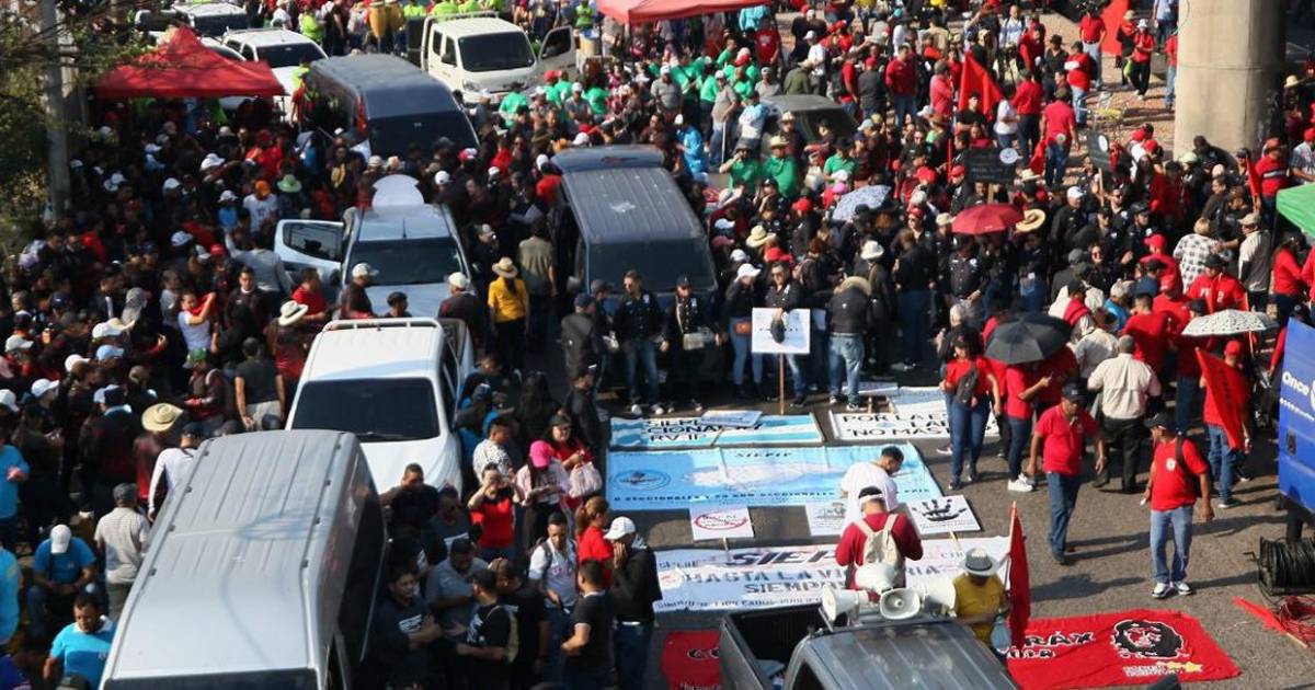 Con retrasos y politizada, inicia marcha del Día del Trabajador en Tegucigalpa