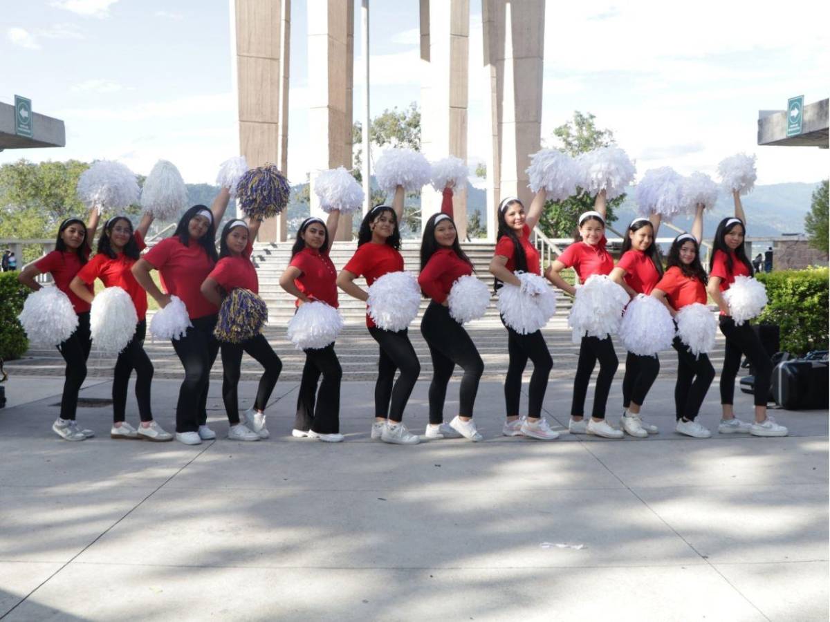 Las pomponeras del Centro Básico Yave Nissi afinan sus bailes y coreografías para participar en los desfiles del 15 de septiembre, en conmemoración de los 204 años de independencia de Honduras.