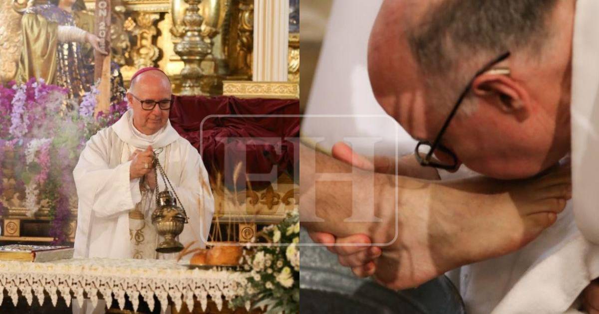 Durante la celebración, el sacerdote realizó el rito del lavatorio de pies a varios feligreses, evocando el pasaje bíblico del Evangelio de San Juan en el que Jesús lava los pies a sus apóstoles como muestra de servicio.