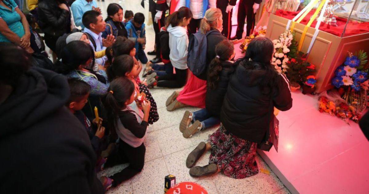 Los feligreses que llegan hasta el altar de la Virgen se hincan para hacer sus peticiones.