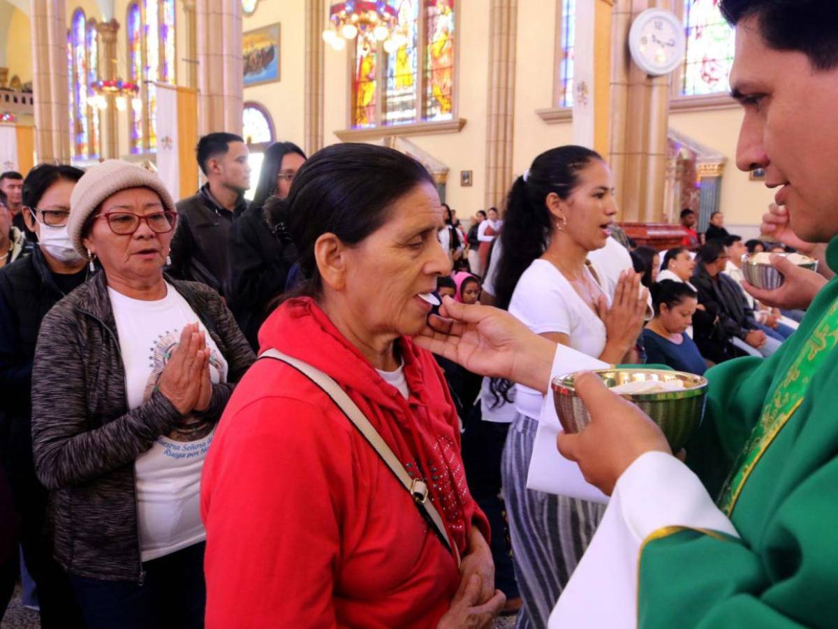 Los actos religiosos incluyen misas y rosarios, caminatas, cánticos y el recibimiento de la hostia, que es el pan consagrado o “cuerpo de Cristo” durante la misa.