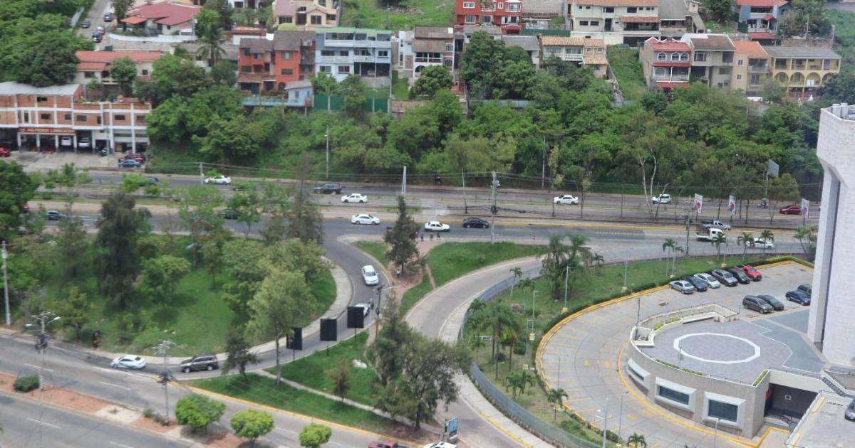 La imagen aérea muestra el inicio del puente en el Centro Cívico Gubernamental (CCG), hasta llegar al bulevar Suyapa. En las medianas habrá gradas para subir al puente desde varios sectores.