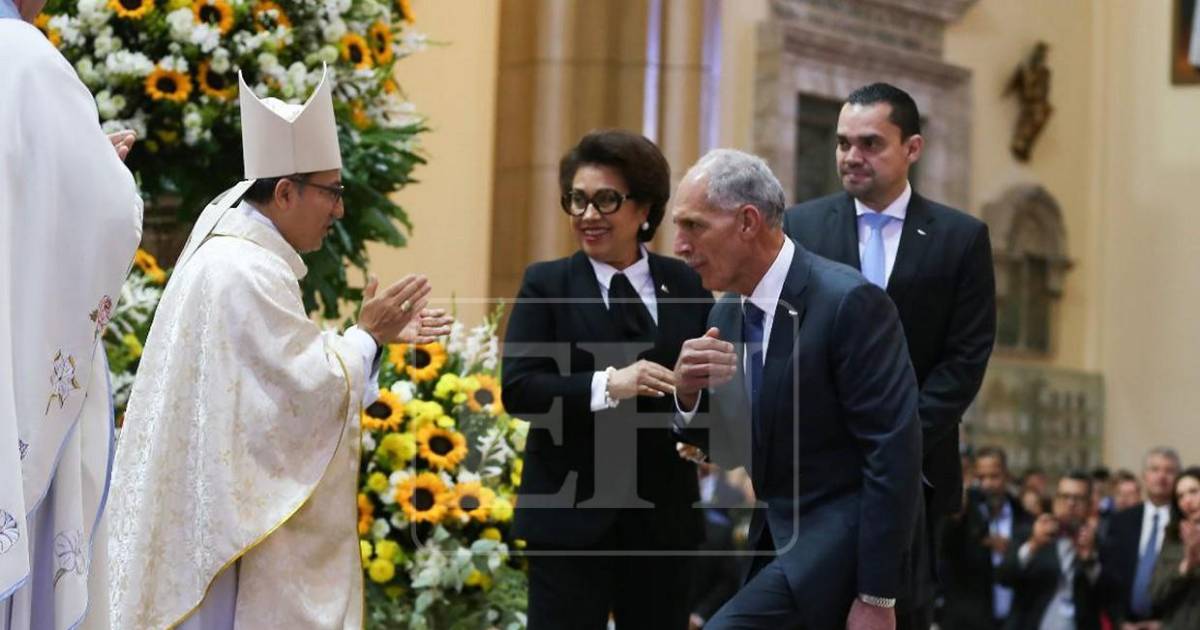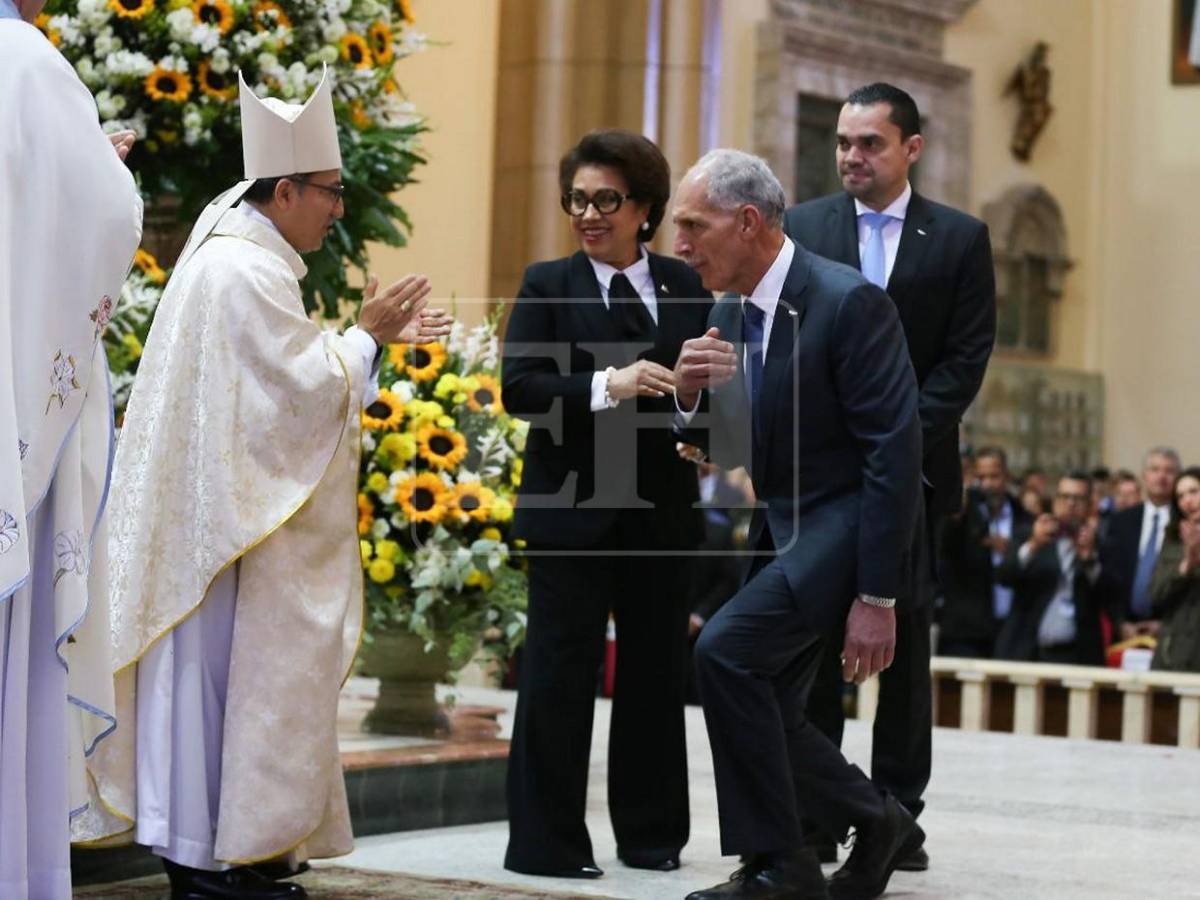 El presidente y la primera dama Lissette del Cid de Asfura en primera fila durante la eucaristía.