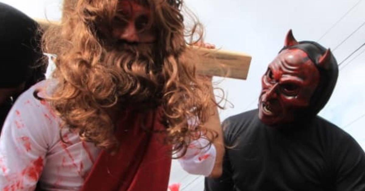La representación recreó momentos clave de la pasión de Cristocuando es crucificado frente a decenas de asistentes congregados en Parada Marte.