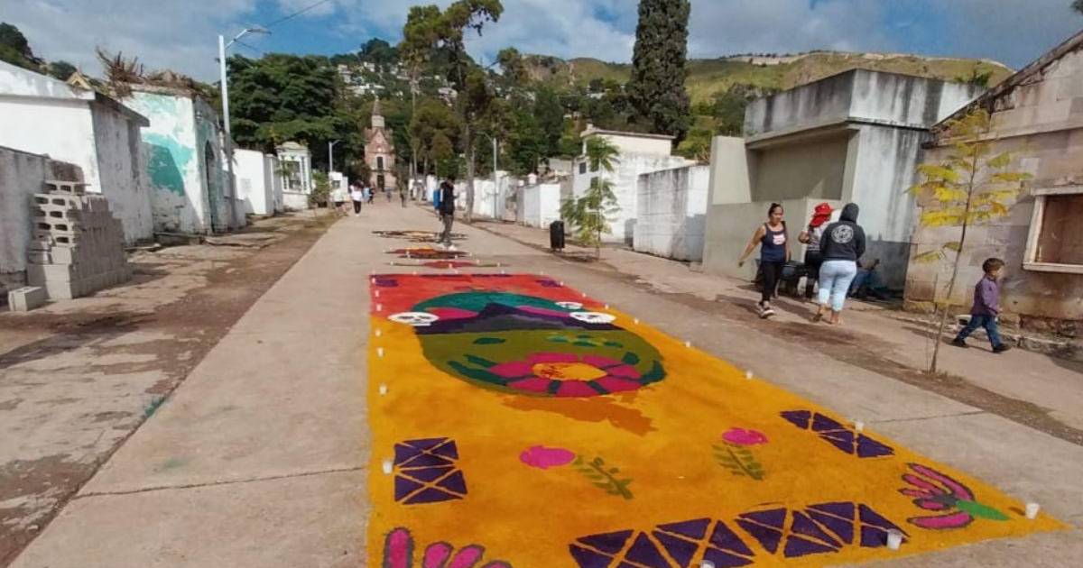 Esta es la primera vez que se colocan alfombras en el marco del Día de Difuntos en un cementerio de la capital hondureña.