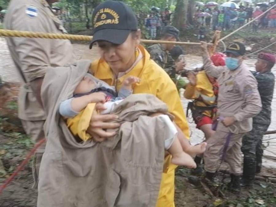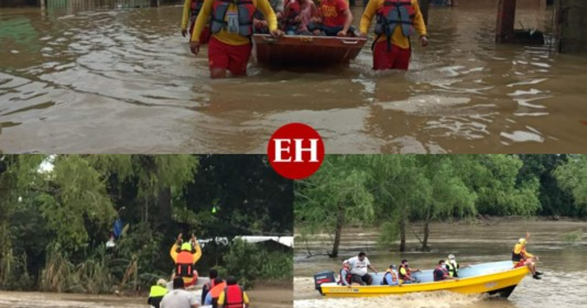 Las operaciones de rescate se concentran en el productivo valle de Sula donde miles de personas habían retornado para limpiar sus casas luego que la zona sufriera los mayores desastres por el desbordamiento de los caudalosos ríos Ulúa y Chamelecón. Fotos: Twitter Cuerpo de Bomberos. 24/11/2020 - 00:001 / 17 -