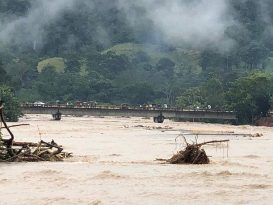 Así lucía el río en Tegucigalpita, Omoa, tras desbordarse en las últimas horas donde se realizan evacuaciones. 24/11/2020 - 00:008 / 17 -