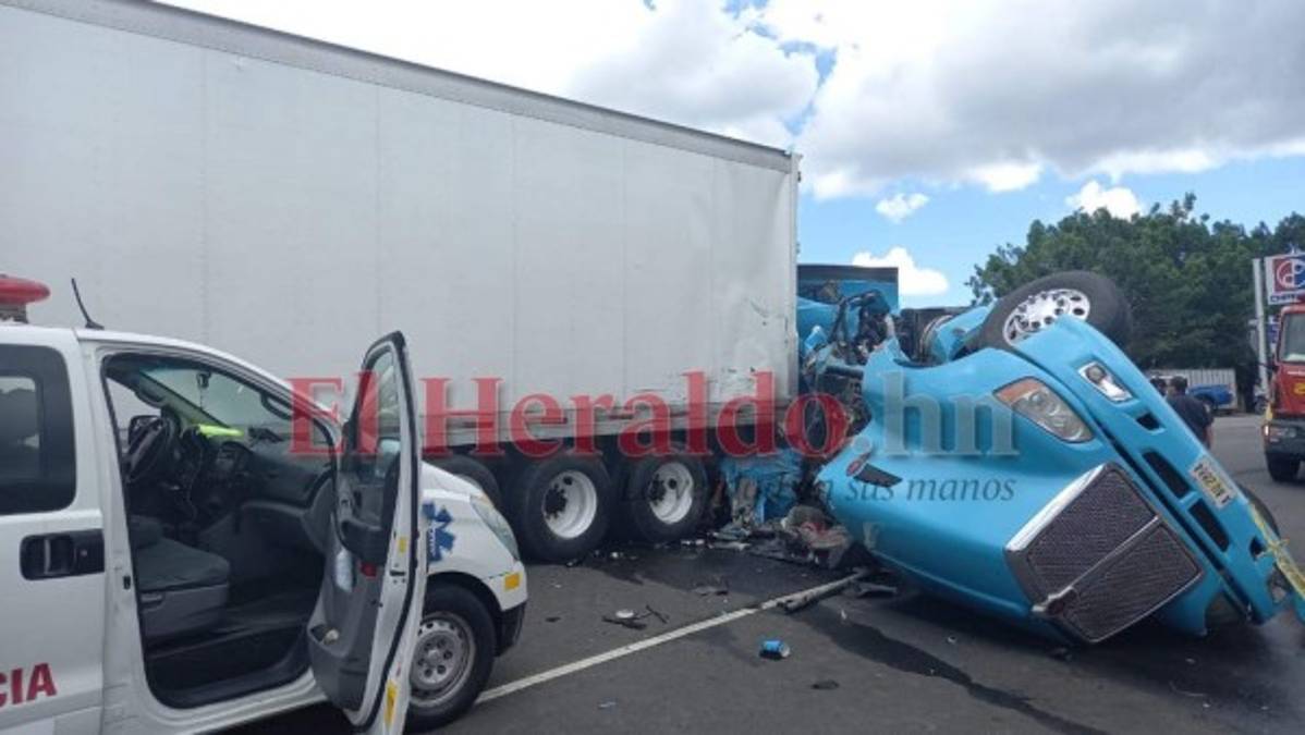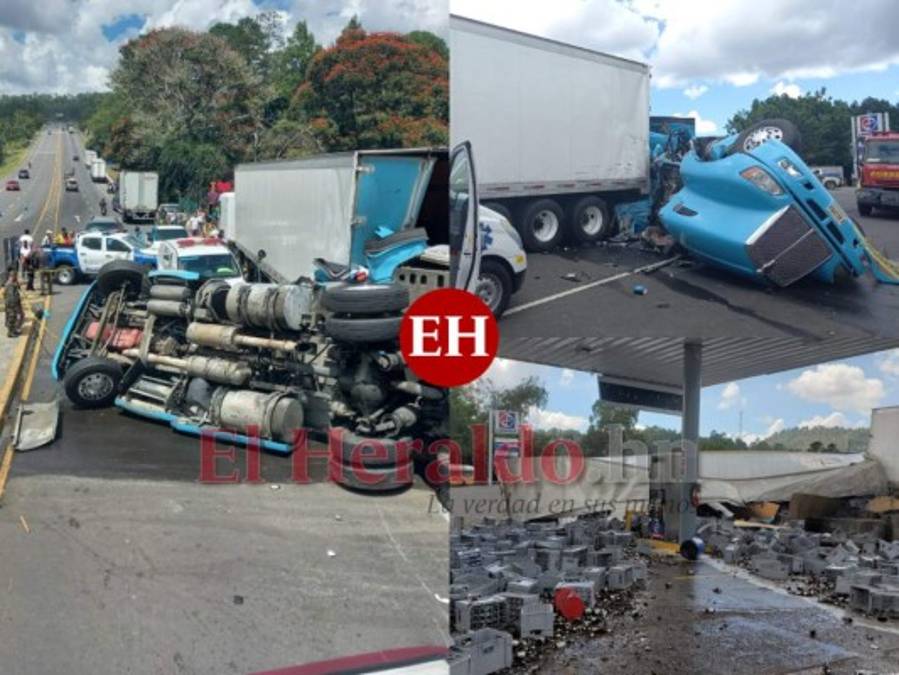 Un muerto dejó el volcamiento de una rastra en Zambrano, carretera CA-5. Escombros, tráfico vehicular y una escena desastrosa fue captada por el lente de EL HERALDO. Fotos: Estalin Irías 12/10/2021 - 00:001 / 13 -