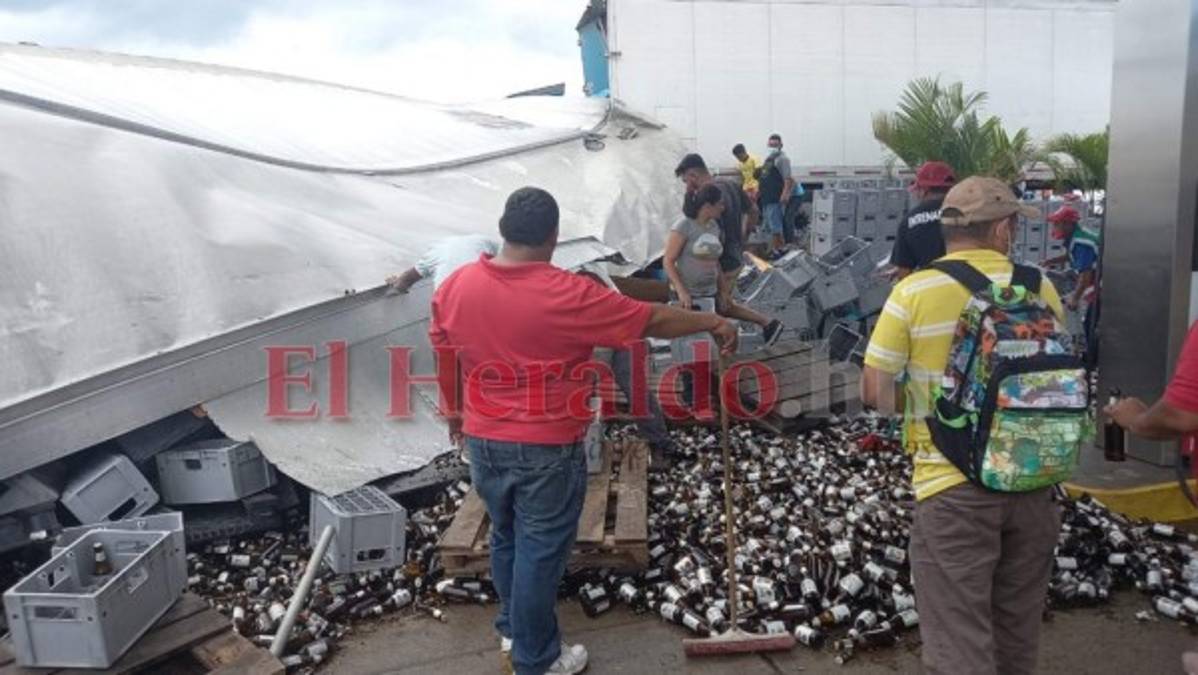 En la zona quedaron escombros del vehículo pesado y vidrios, ya que la rastra transportaba bebidas embriagantes. 12/10/2021 - 00:007 / 13 -