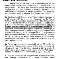 Ante este escenario, la CIENEE se ve en la obligación de iniciar el estudio y la evaluación de los resultados del contrato, donde habrá que comparar la situación existente con la que se hubiera dado con un cumplimiento íntegro del contrato, para reclamar ante las autoridades competentes la posible indemnización por daños y perjuicios al sistema de distribución ocasionados por EEH debido al incumplimiento de los objetivos en el contrato.