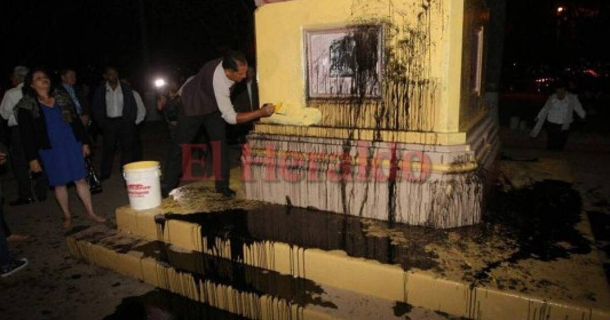 'Fuera JOH', 'Traidor' y 'Vas a caer' escribieron sobre varias columnas del recreativo espacio en el que está ubicado el busto de Manuel Bonilla, expresidente y fundador del partido de la estrella solitaria.