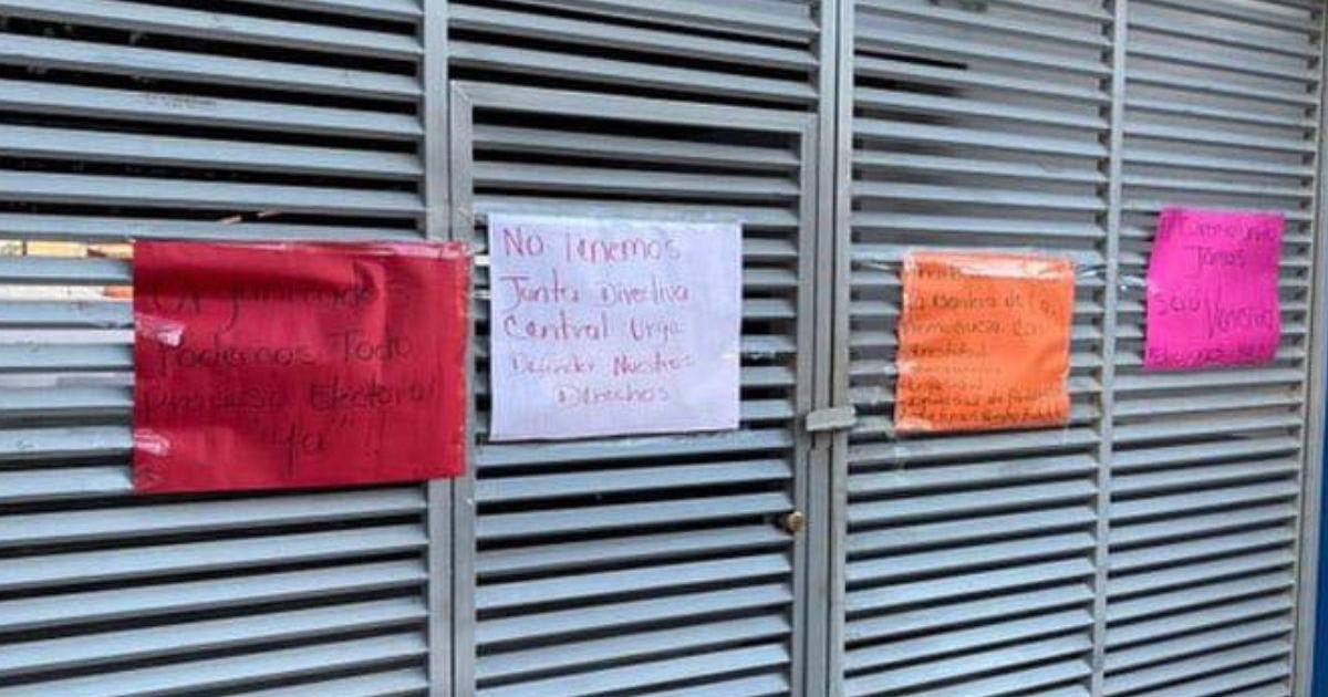 “No tenemos junta directiva central, urge defender nuestros derechos”, “organizados, podemos todo proceso electoral ya”: estas fueron algunas de las expresiones de los manifestantes escritas en pancartas.