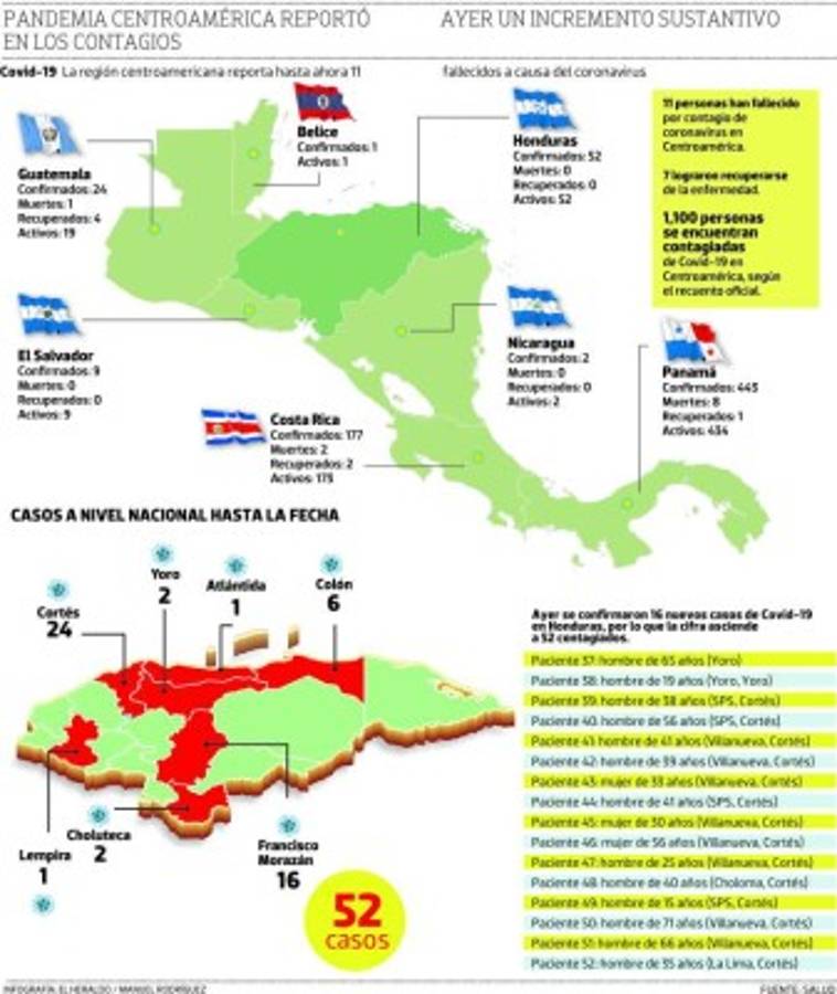El tercer país más afectado en la región centroamericana es Honduras, que hasta al cierre de esta edición impresa reporta un total de 52 personas contagiadas.