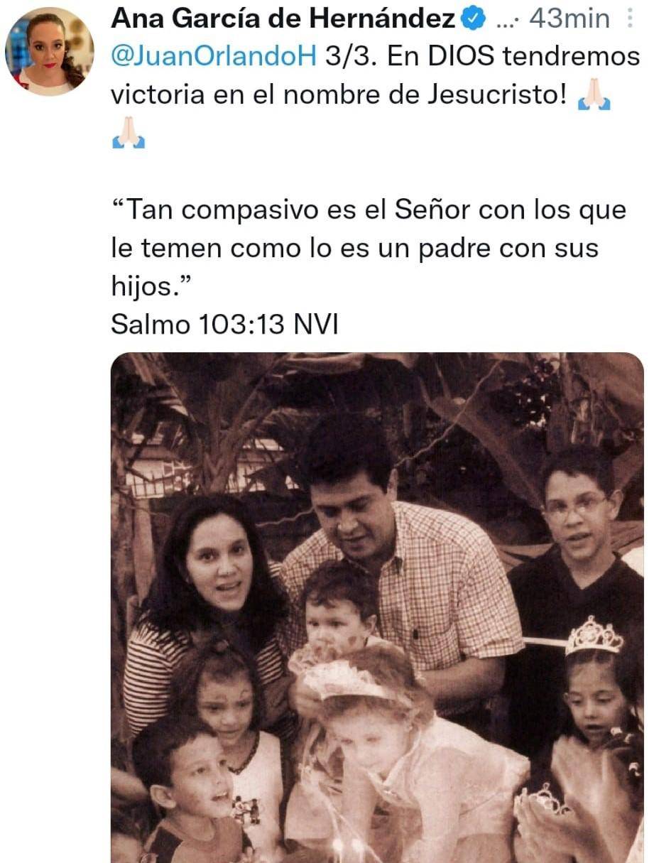 TEGUCIGALPA, HONDURAS.- Con un sentido mensaje por el Día del Padre, la ex primera dama, Ana García, felicitó este 19 de marzo a su esposo Juan Orlando Hernández, quien está a las puertas de la extradición hacia Estados Unidos.