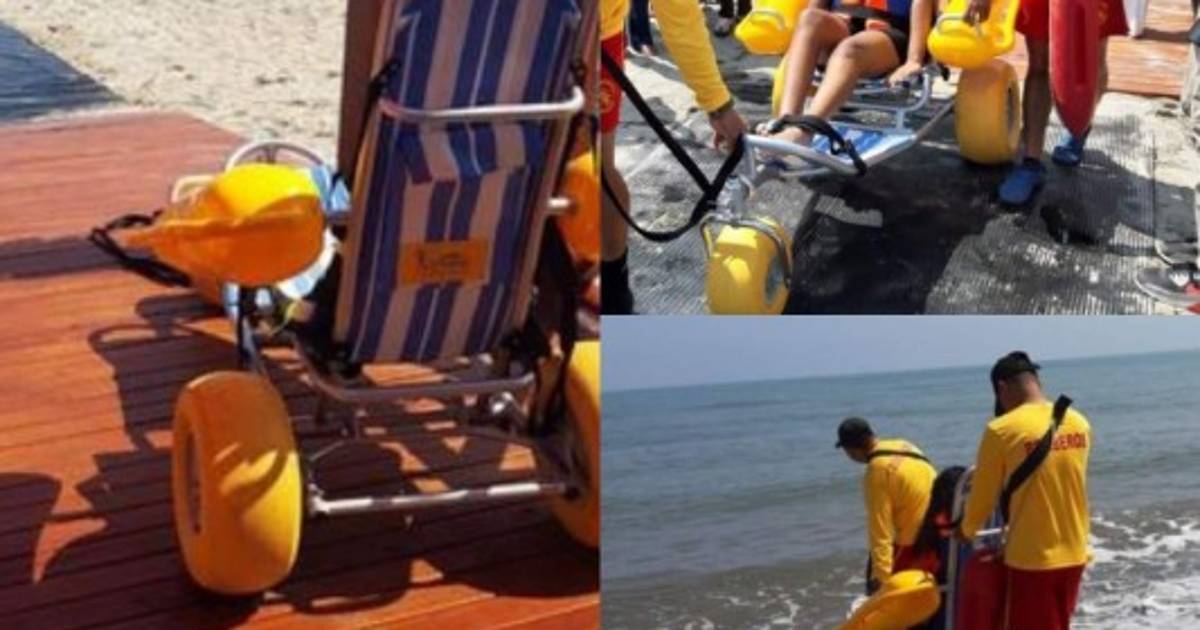 La playa inclusiva cuenta con una plataforma de madera que va de la playa hasta el agua para que personas en silla de rueda puedan sentir el océano.