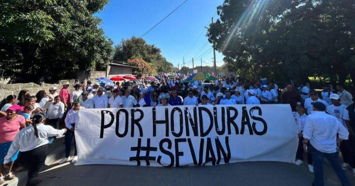Nasralla denunció en plena marcha que “nos oponemos al comunismo por la violación a los derechos de circulación que hizo el gobierno opresor fascista comunista de Xiomara Castro al no permitir el ingreso de buses de las comunidades aledañas”.