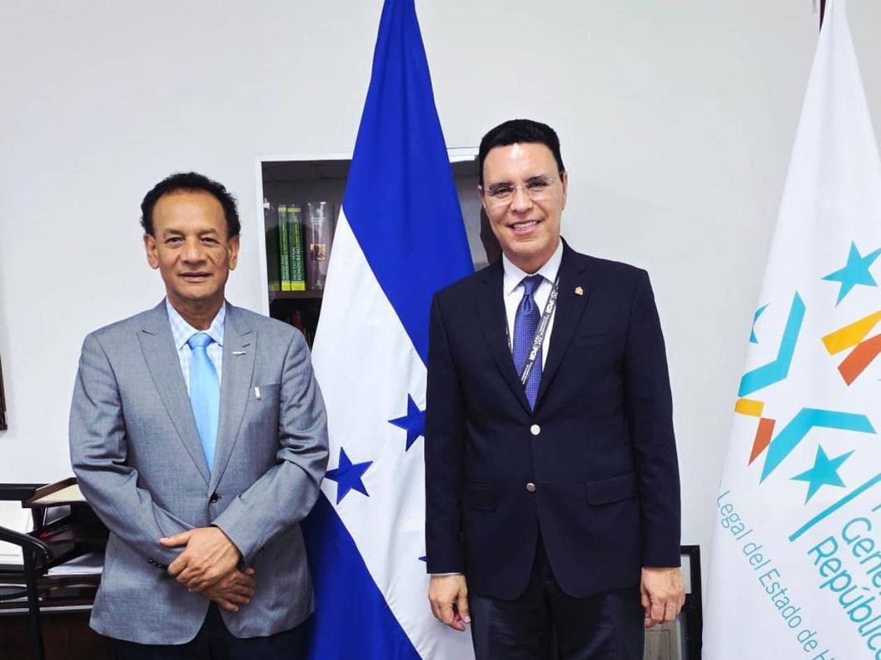 Tegucigalpa, Honduras.-Con el objetivo de establecer una colaboración interinstitucional orientada a la resolución expedita de conflictos legales en materia agraria, el ministro-director del Instituto Nacional Agrario (INA), Javier Talavera, sostuvo una reunión con el Procurador General de la República (PGR), Dagoberto Aspra.