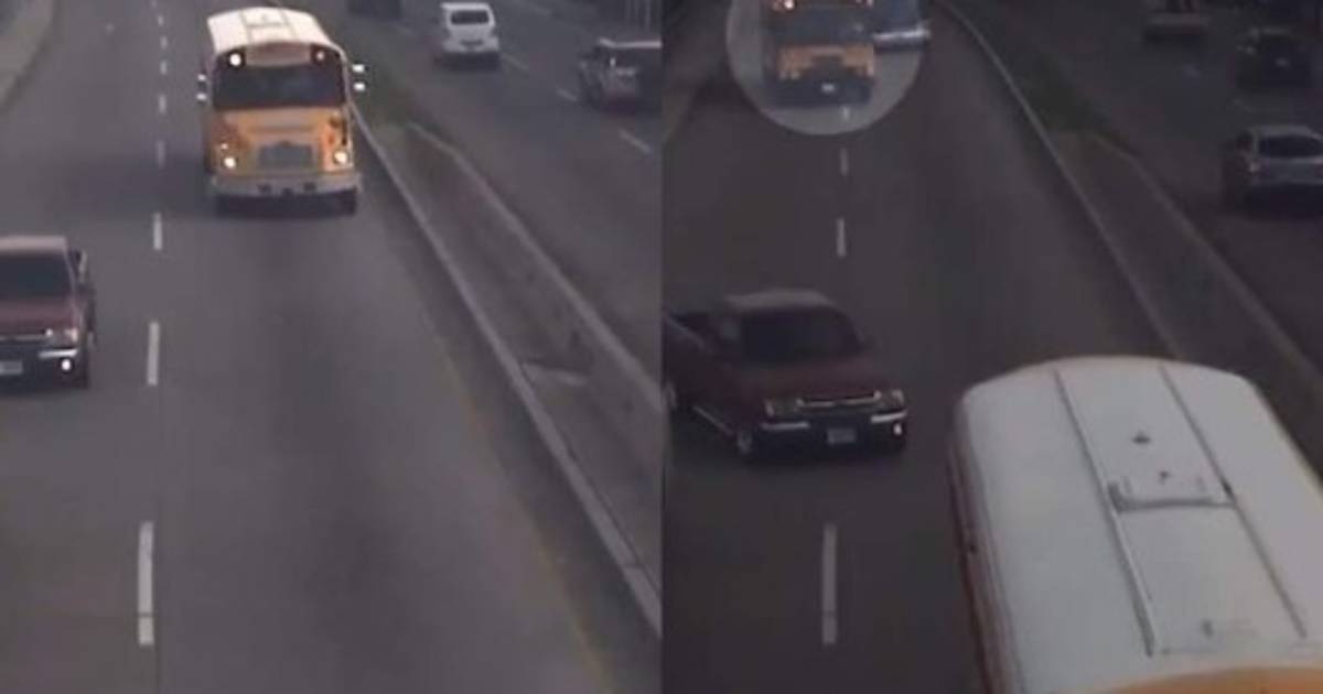 El vídeo muestra que el conductor de un autobús rebasa el carril derecho justo cuando un vehículo pick-up decide proseguir su trayecto. Debido al exceso de velocidad, el motorista de la unidad de transporte frena inesperadamente y pierde el control hasta estrellarse contra un bus ejecutivo que cubre la ruta El Carrizal.