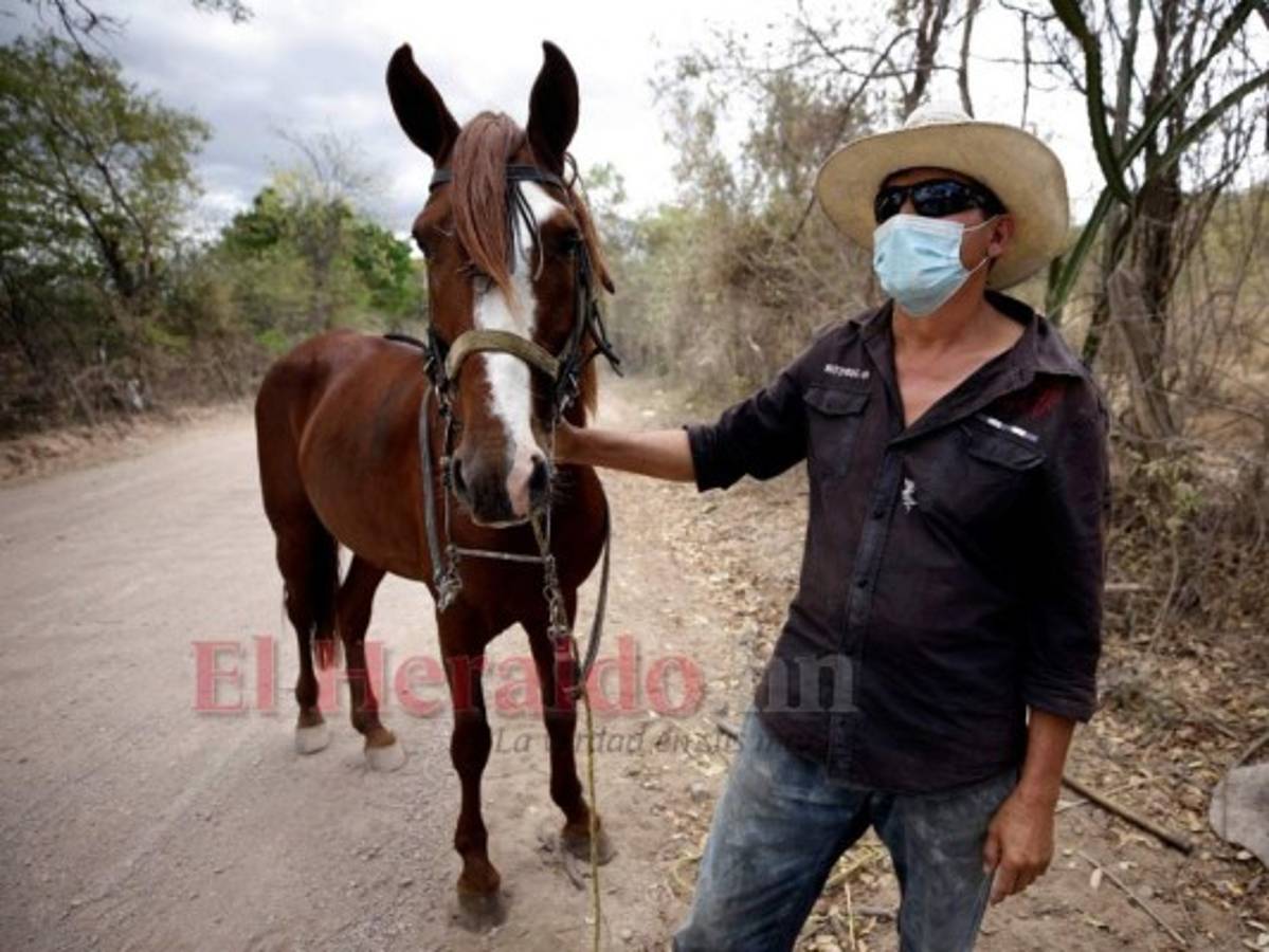 “¡Ooooh, vacaaa!...”, arreaba el lugareño Filander Barahora, quien montado en su caballo no se quita la mascarilla cuando transita las polvorientas calles de Nueva Armenia, al sur de Francisco Morazán.La Unidad de EL HERALDO Plus llegó hasta el triaje de este pueblo ubicado en el Instituto Doctor René Aguilar.