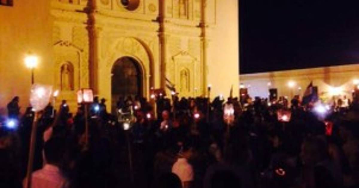 La marcha, iluminada con antorchas que portaban los manifestantes, inicióen la entrada de la ciudad colonial hasta llegar a la Catedral Inmaculada Concepción en el centro histórico.