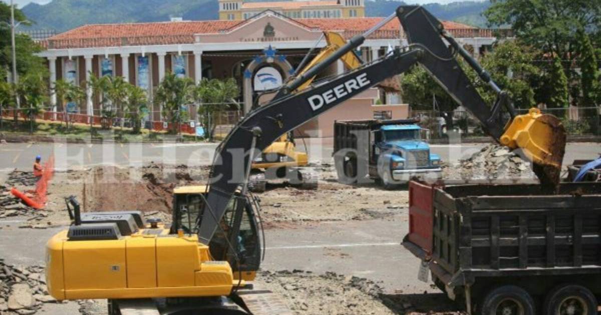 Sobre la denominada Plaza la Democracia de Casa Presidencial ya están dos retroexcavadoras con las labores de excavación, para realizar los cimientos del edificio lo más pronto posible.