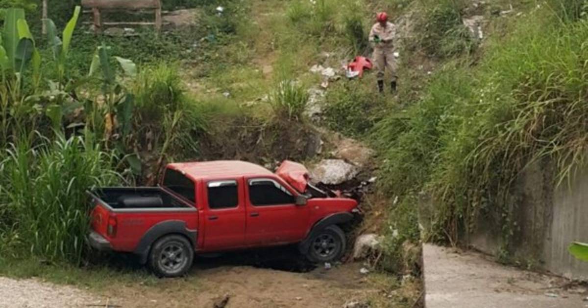 El vehículo, un nissan frontier color rojo, año 2002, con placas PDL 4166, se salió de la calzada y quedó al fondo de una hondonada de aproximadamente 5 metros.