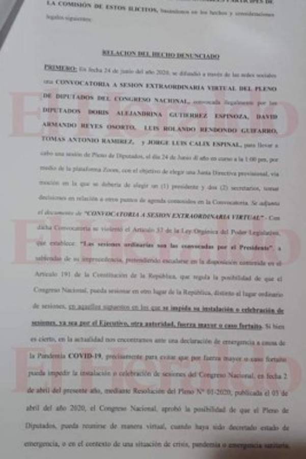 El miércoles por la tarde, los parlamentarios Luis Redondo, Doris Gutiérrez, David Reyes y Tomás Ramírez convocaron a una reunión extraordinaria virtual del pleno de diputados para elegir a una junta directiva provisional.